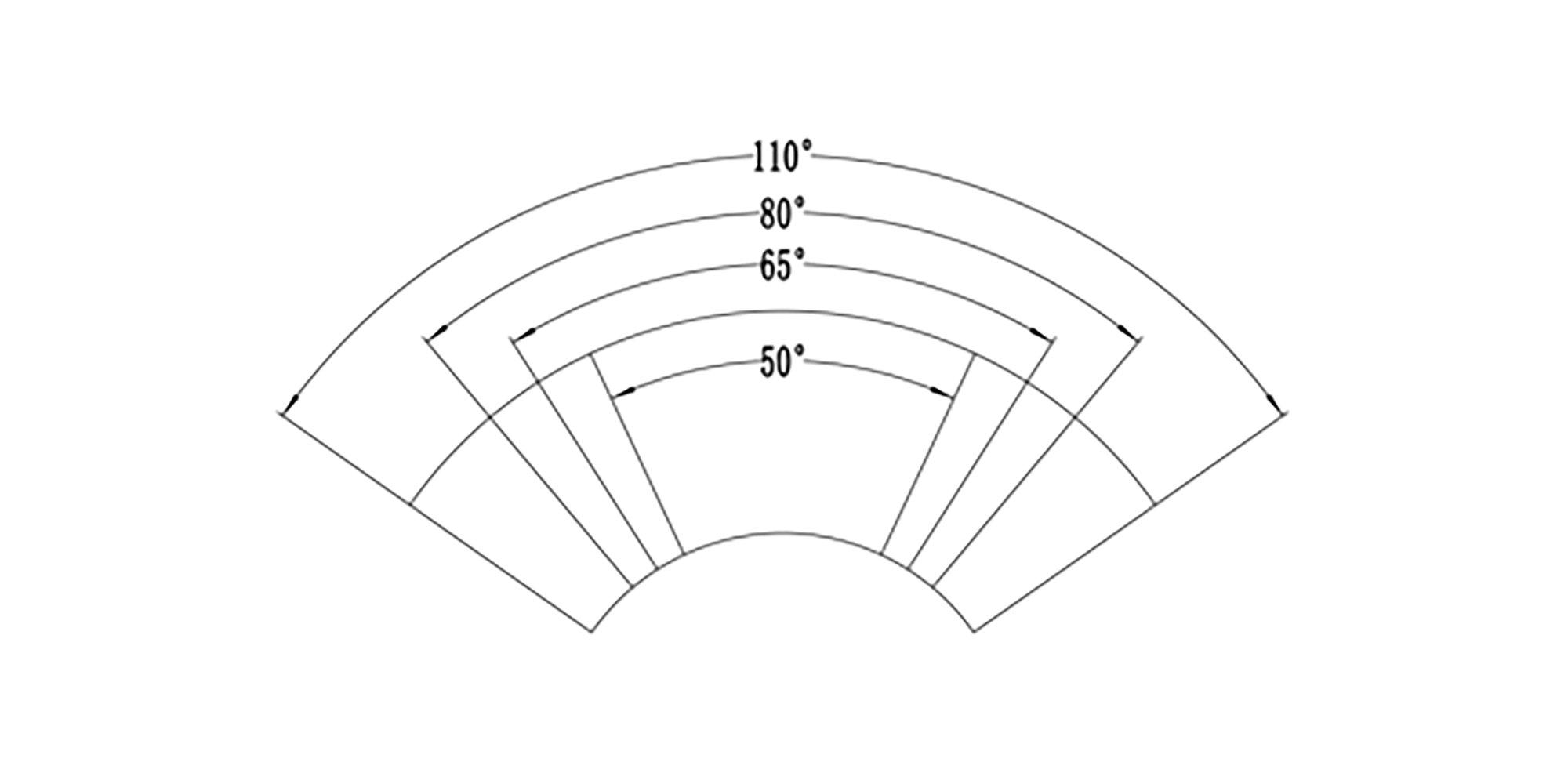 · Adjustable sweep angles: 50°, 65°, 80°, 110°